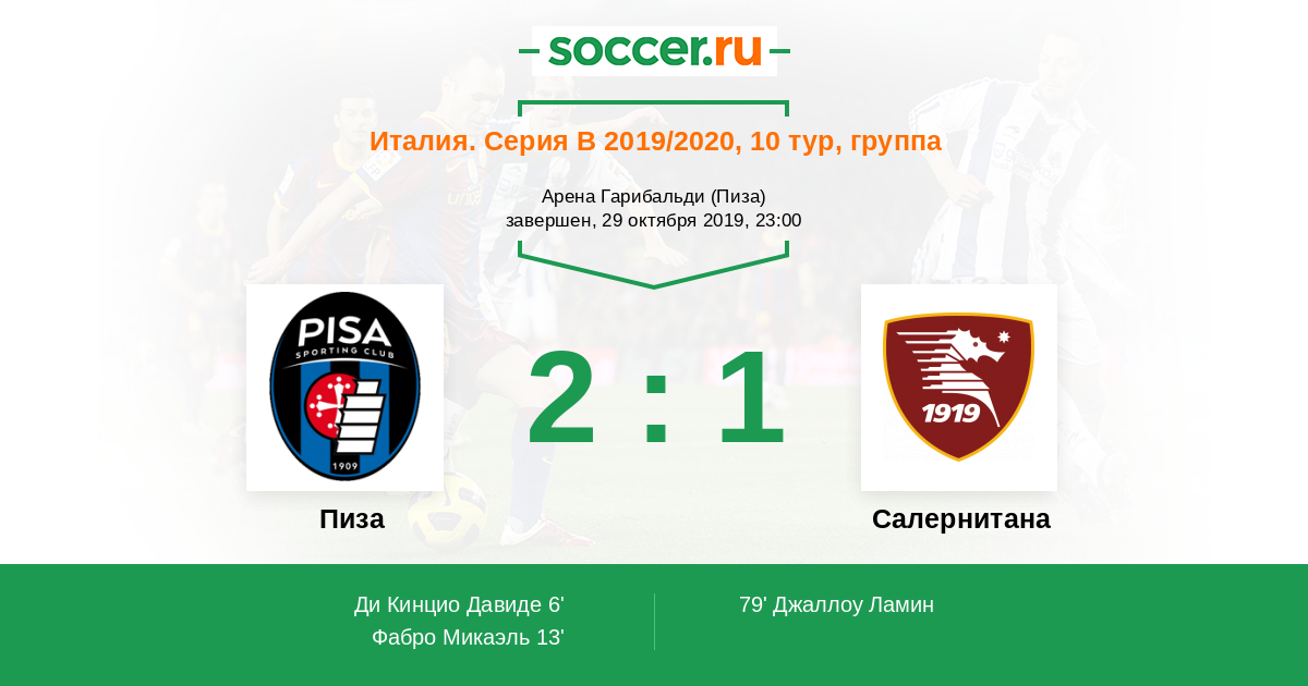 Протокол матча Пиза против Салернитана