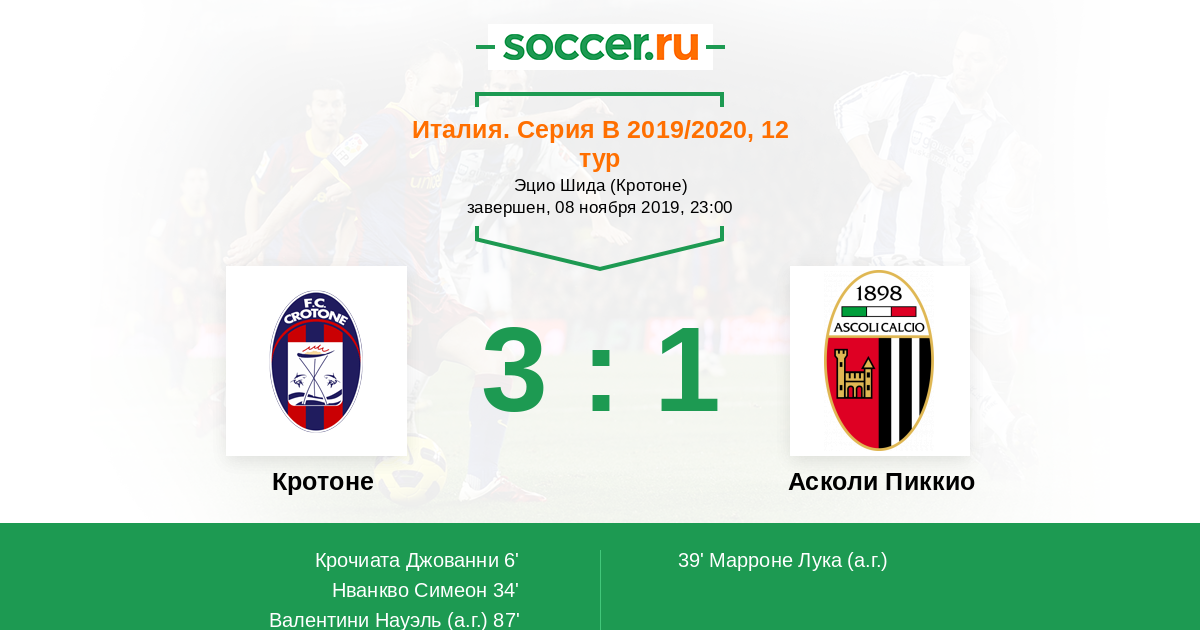 Протокол матча Кротоне против Асколи Пиккио