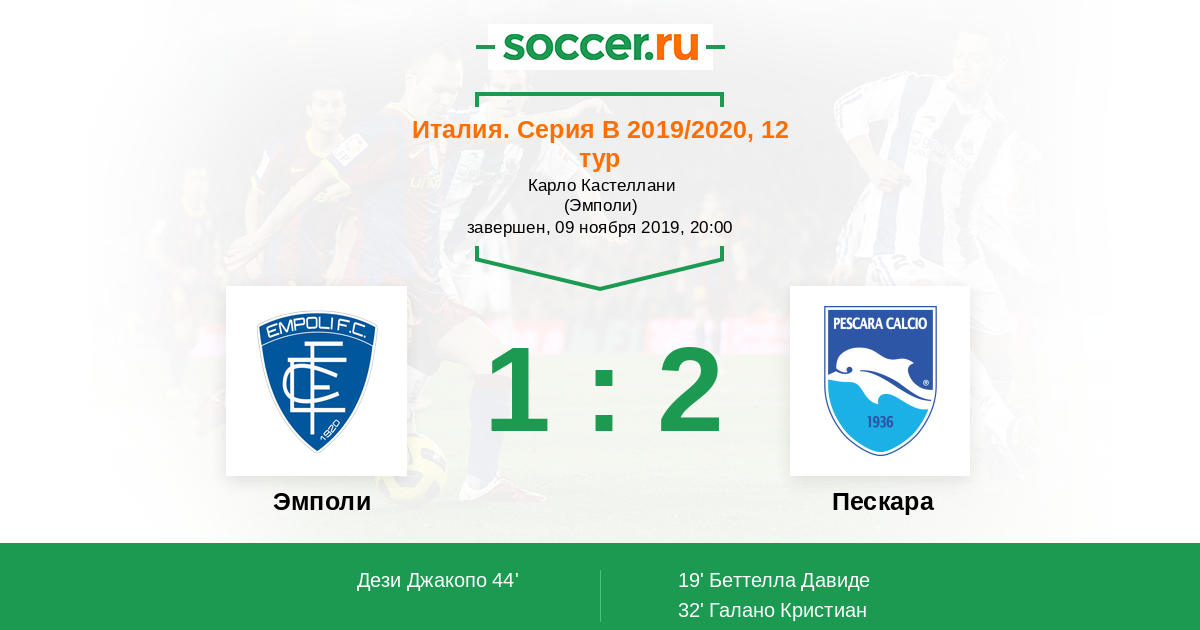 Протокол матча Эмполи против Пескара
