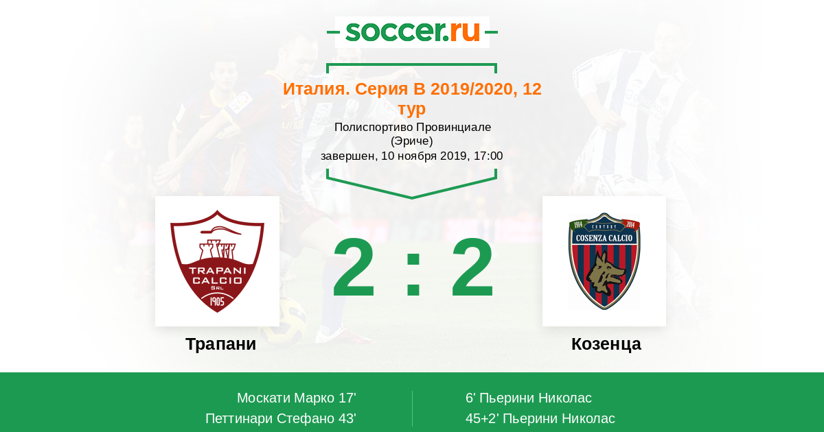 Протокол матча Трапани против Козенца