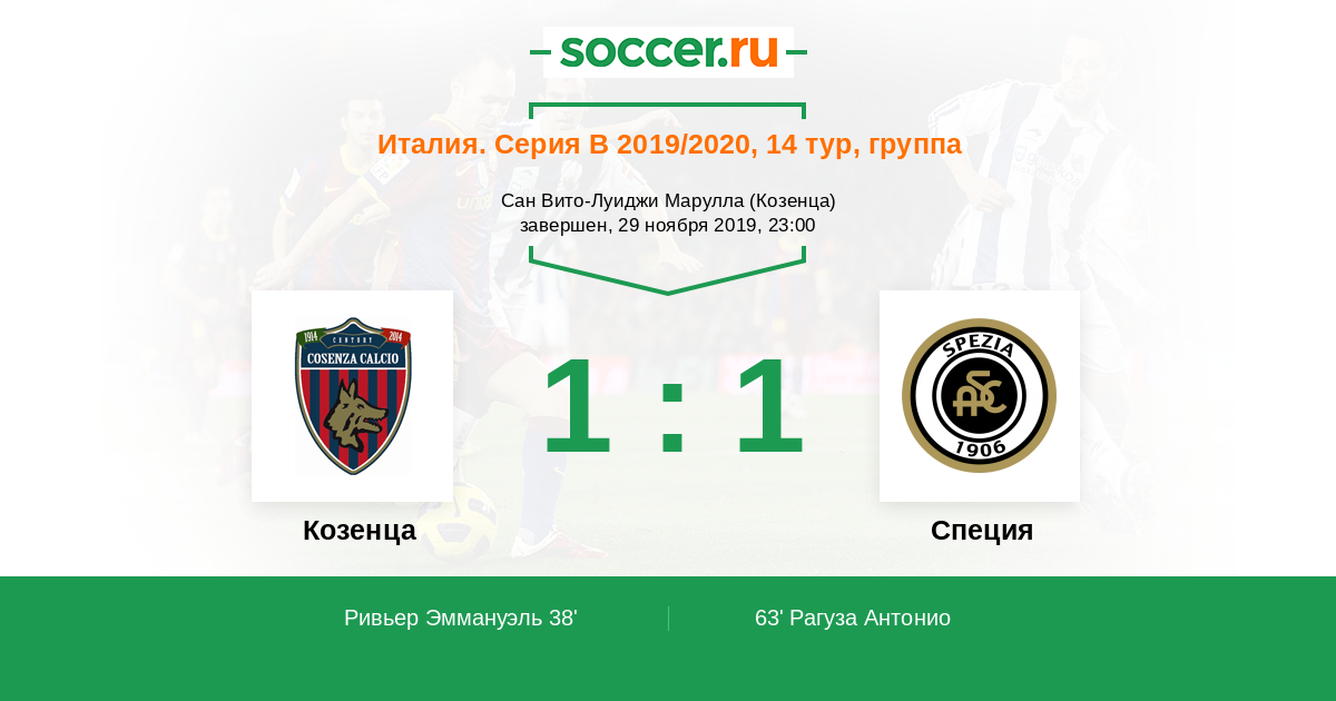 Протокол матча Козенца против Специя