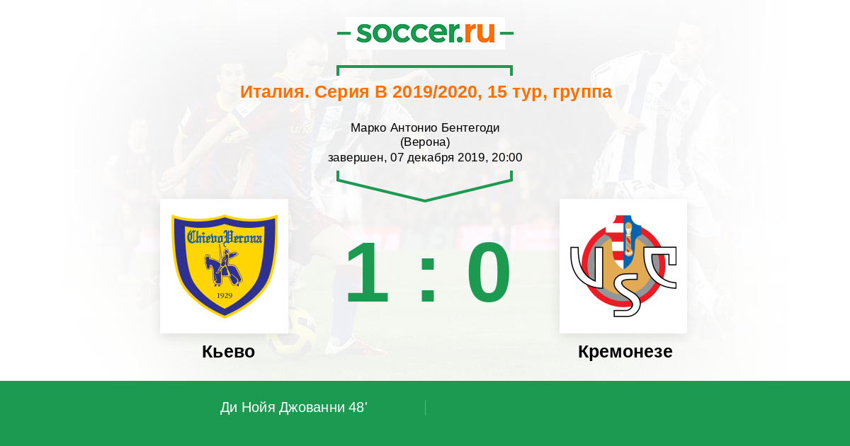 Протокол матча Кьево против Кремонезе