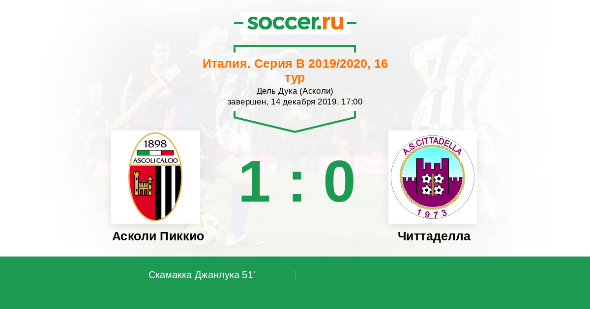 51' (1:0) Скамакка Джанлука (9) (Ардеманьи Маттео (32))