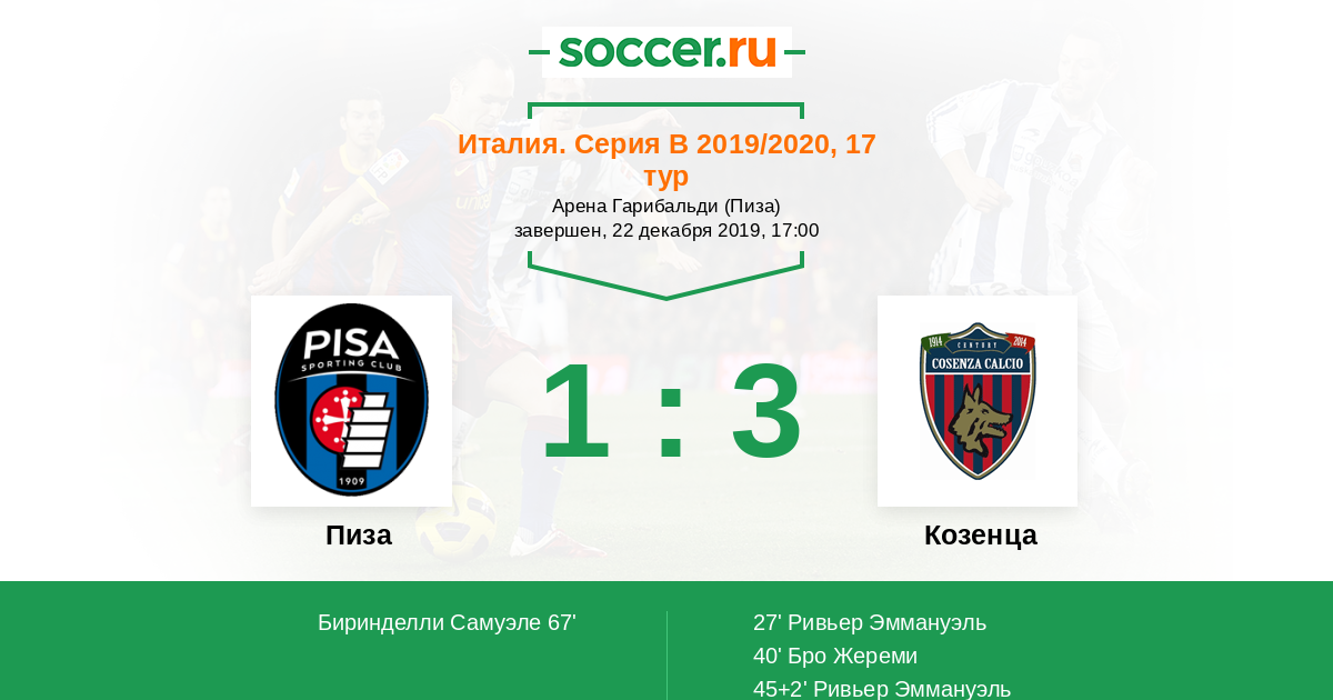 Протокол матча Пиза против Козенца