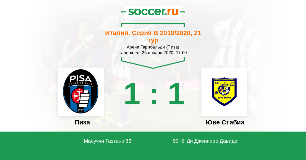 Протокол матча Пиза против Юве Стабиа