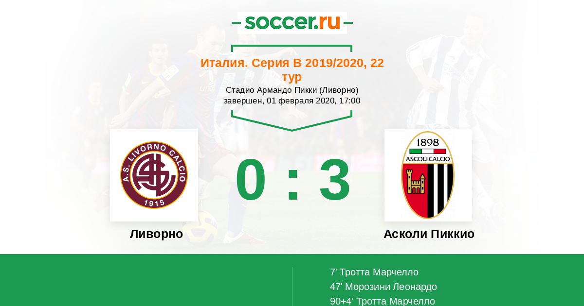Протокол матча Ливорно против Асколи Пиккио