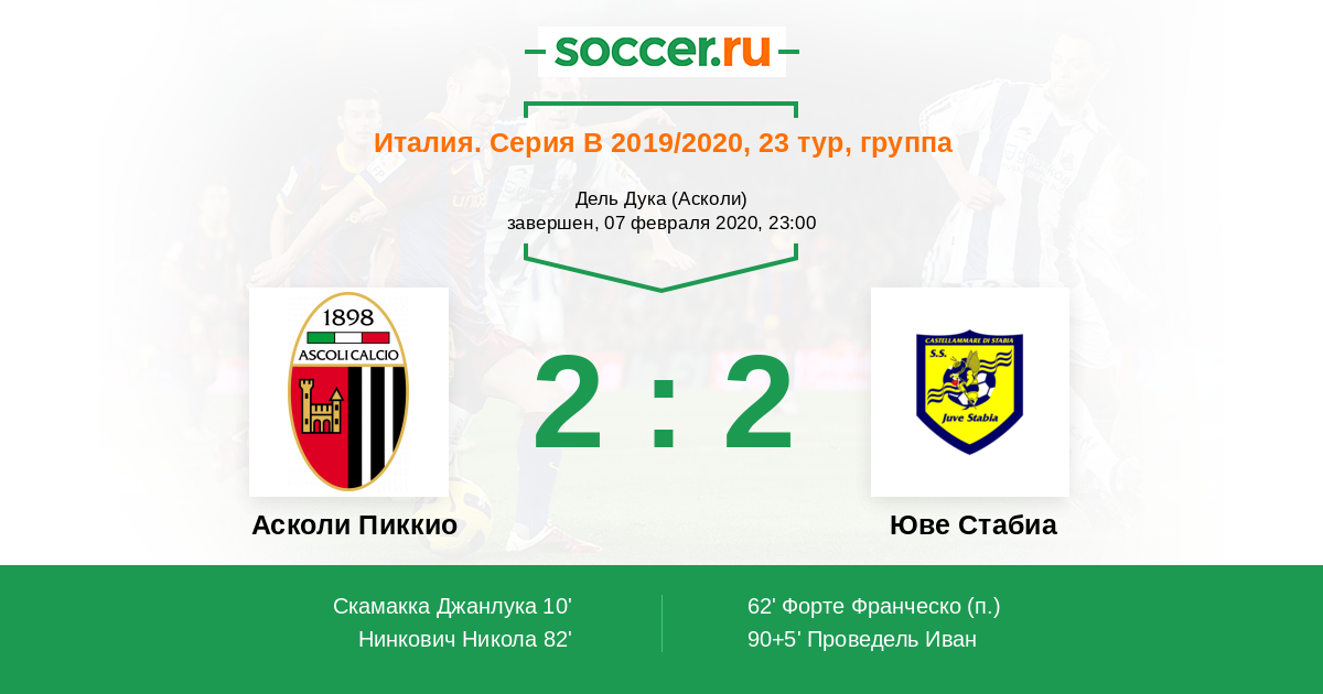 Протокол матча Асколи Пиккио против Юве Стабиа