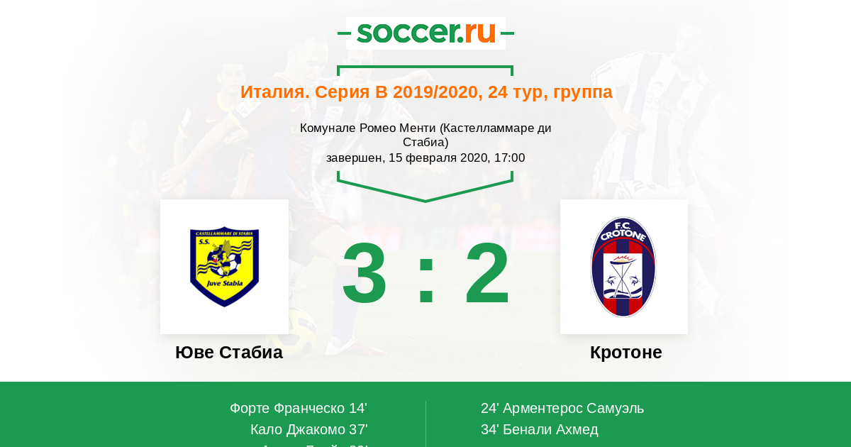 Протокол матча Юве Стабиа против Кротоне