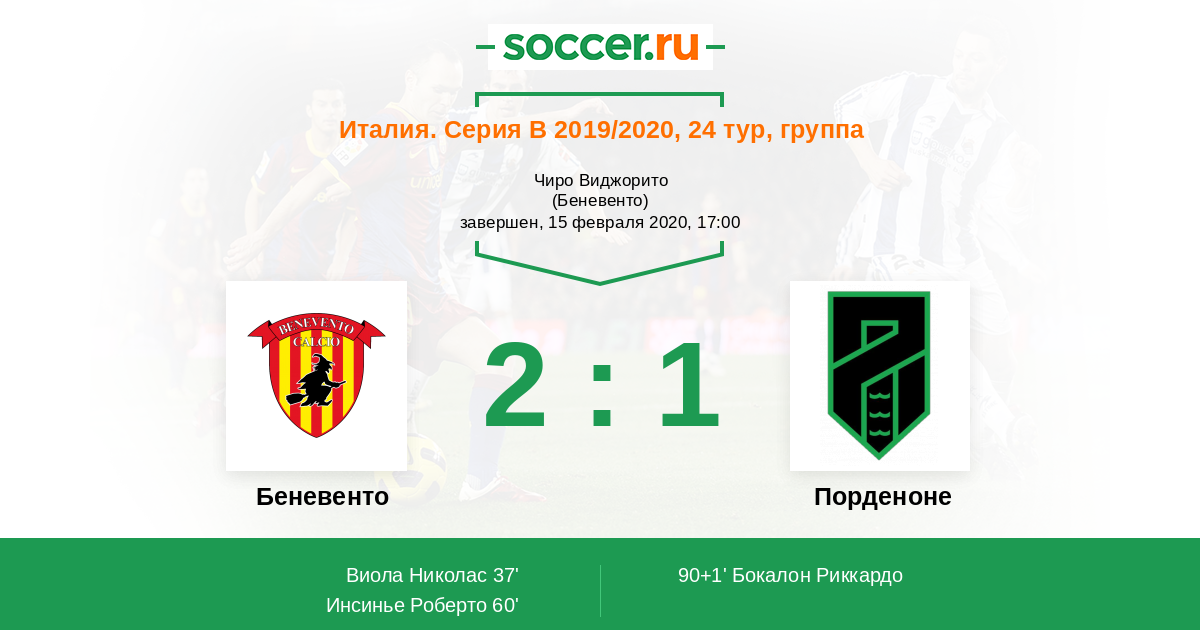 60' (2:0) Инсинье Роберто (19) (Виола Николас (10))