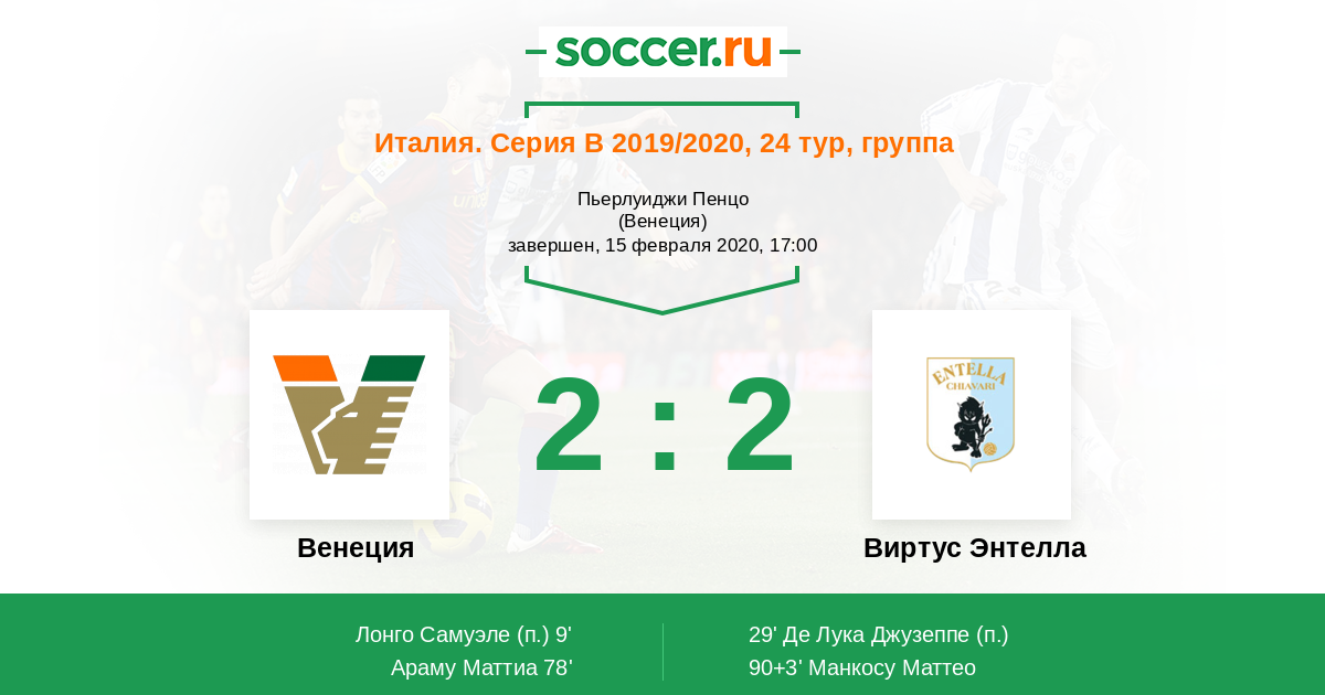 Протокол матча Венеция против Виртус Энтелла