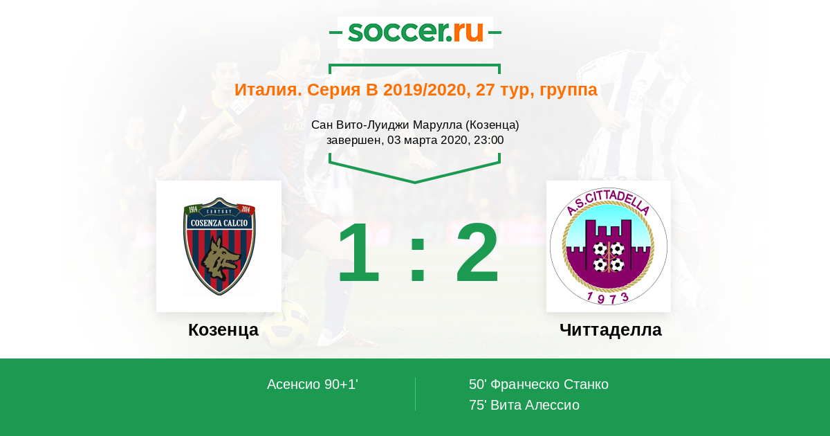 Протокол матча Козенца против Читтаделла