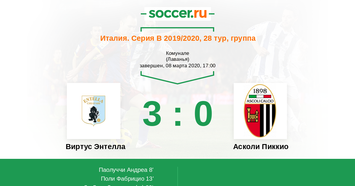 Протокол матча Виртус Энтелла против Асколи Пиккио