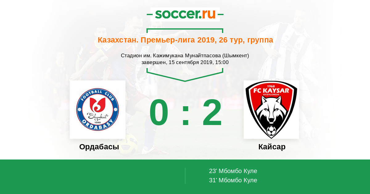 Протокол матча Ордабасы против Кайсар