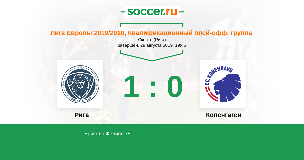 Протокол матча Рига против Копенгаген