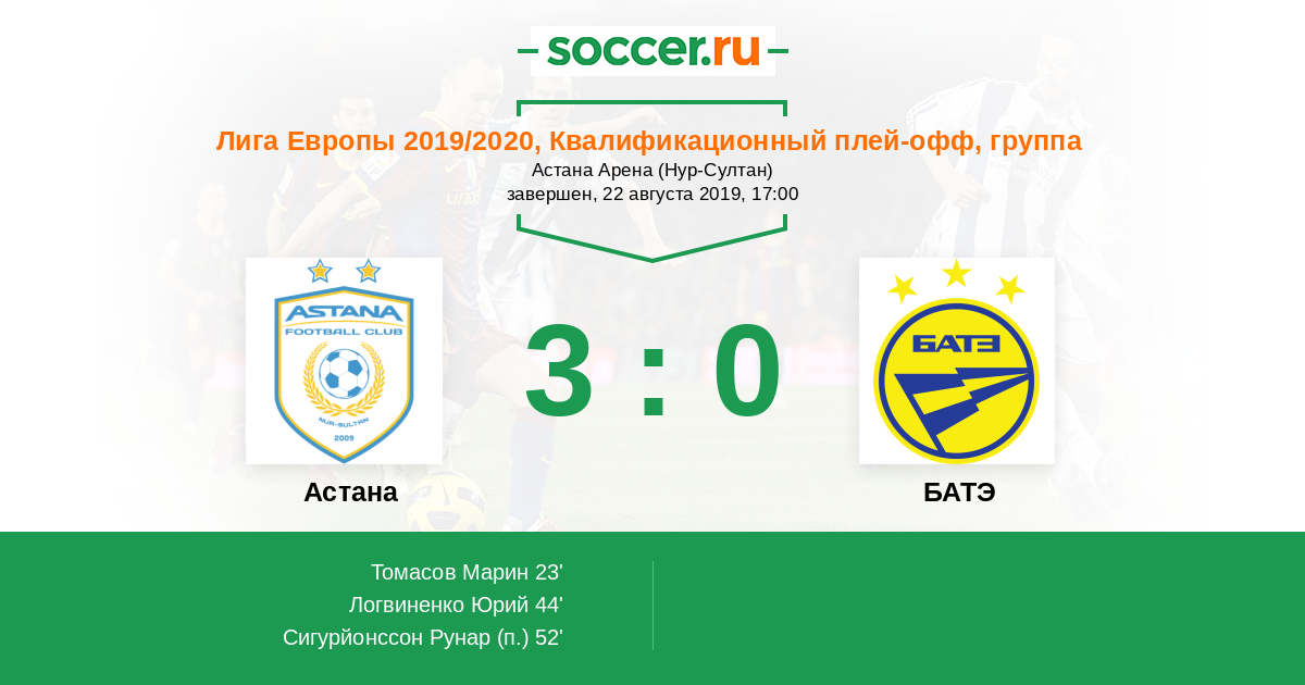Протокол матча Астана против БАТЭ
