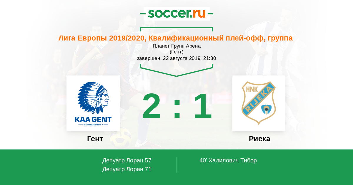 Протокол матча Гент против Риека
