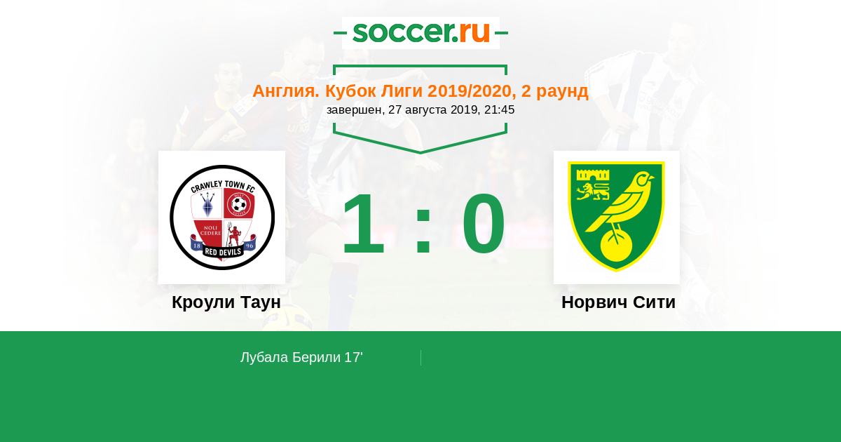 17' (1:0) Лубала Берили (30) (Фергюсон Натан (12))