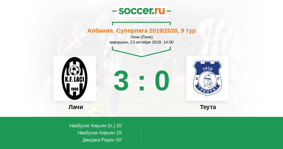 Протокол матча Лачи против Теута