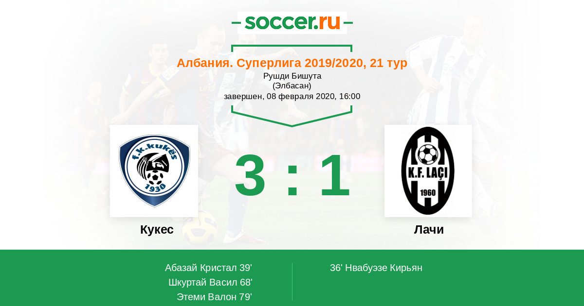 Протокол матча Кукес против Лачи