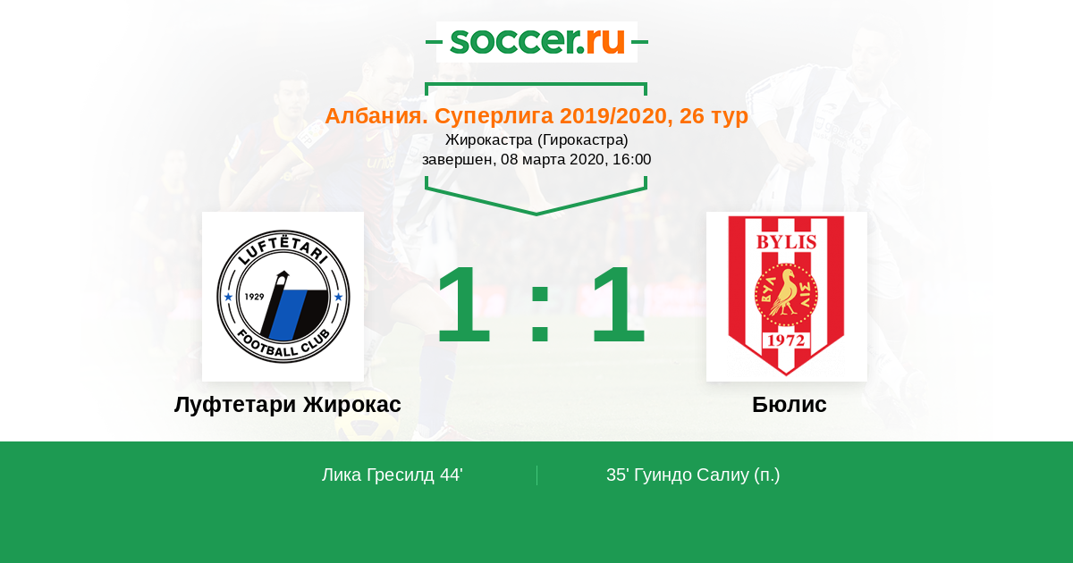 Протокол матча Луфтетари Жирокас против Бюлис