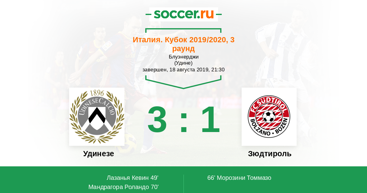 Протокол матча Удинезе против Зюдтироль