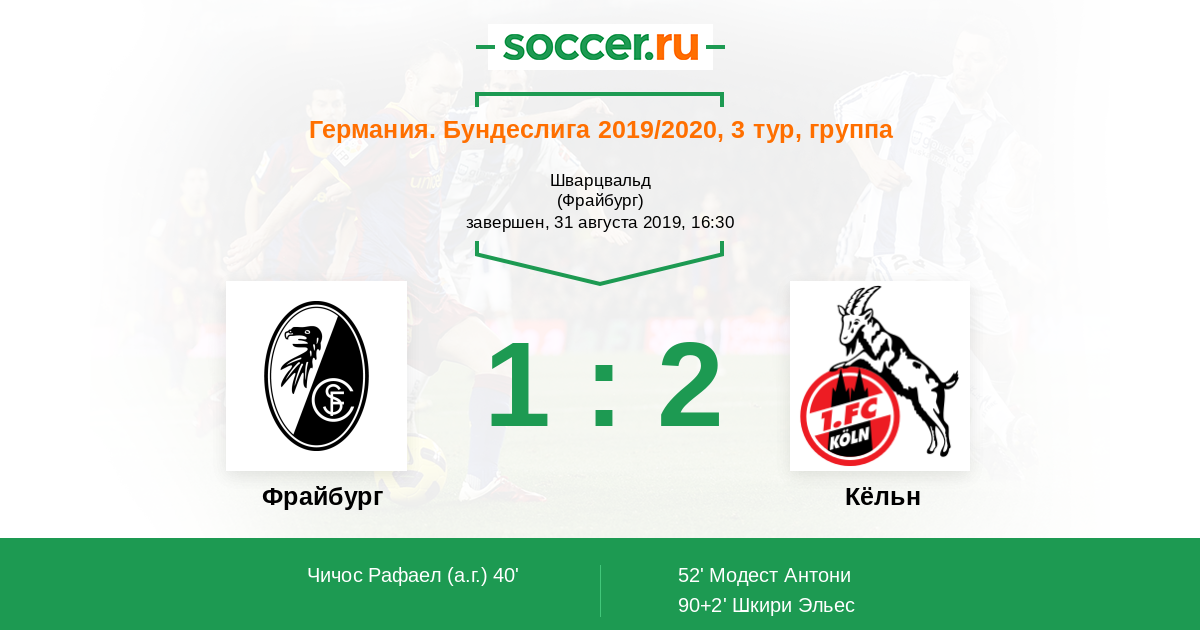 Протокол матча Фрайбург против Кёльн