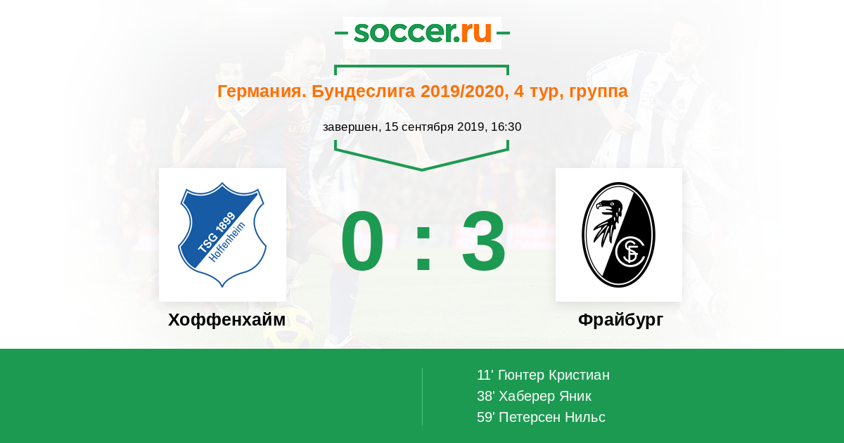 Протокол матча Хоффенхайм против Фрайбург