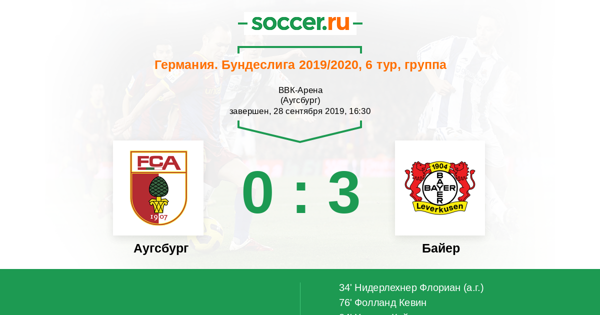 Протокол матча Аугсбург против Байер