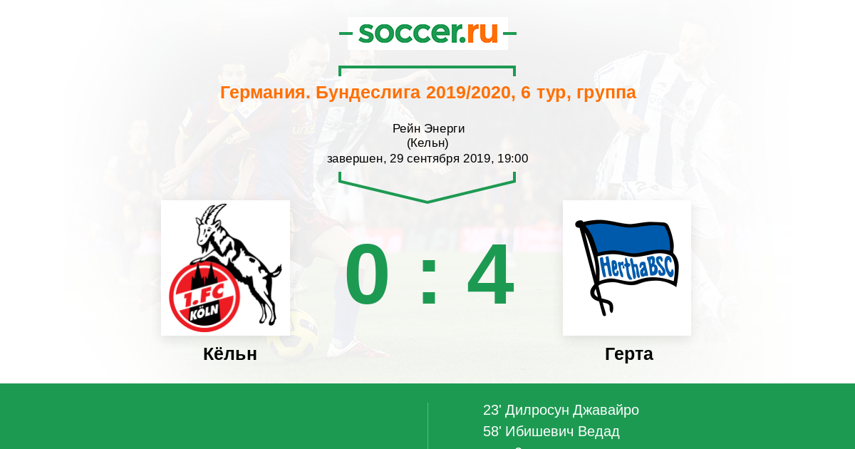 Протокол матча Кёльн против Герта