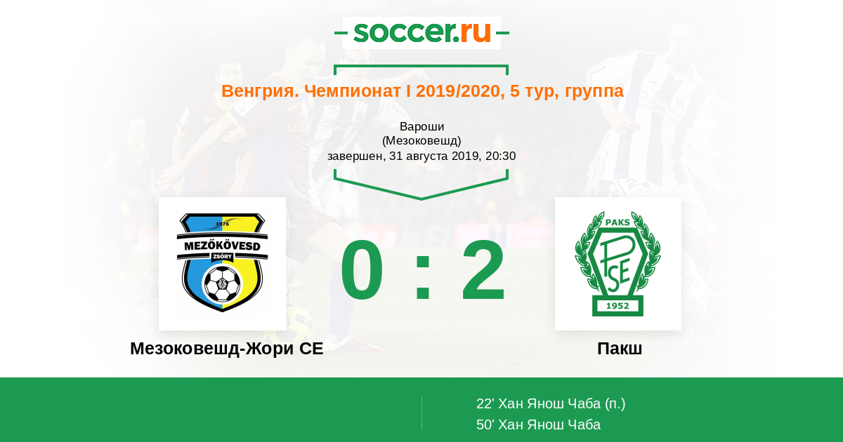 Протокол матча Мезоковешд-Жори СЕ против Пакш