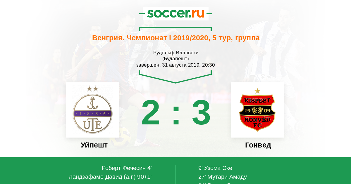 Протокол матча Уйпешт против Гонвед