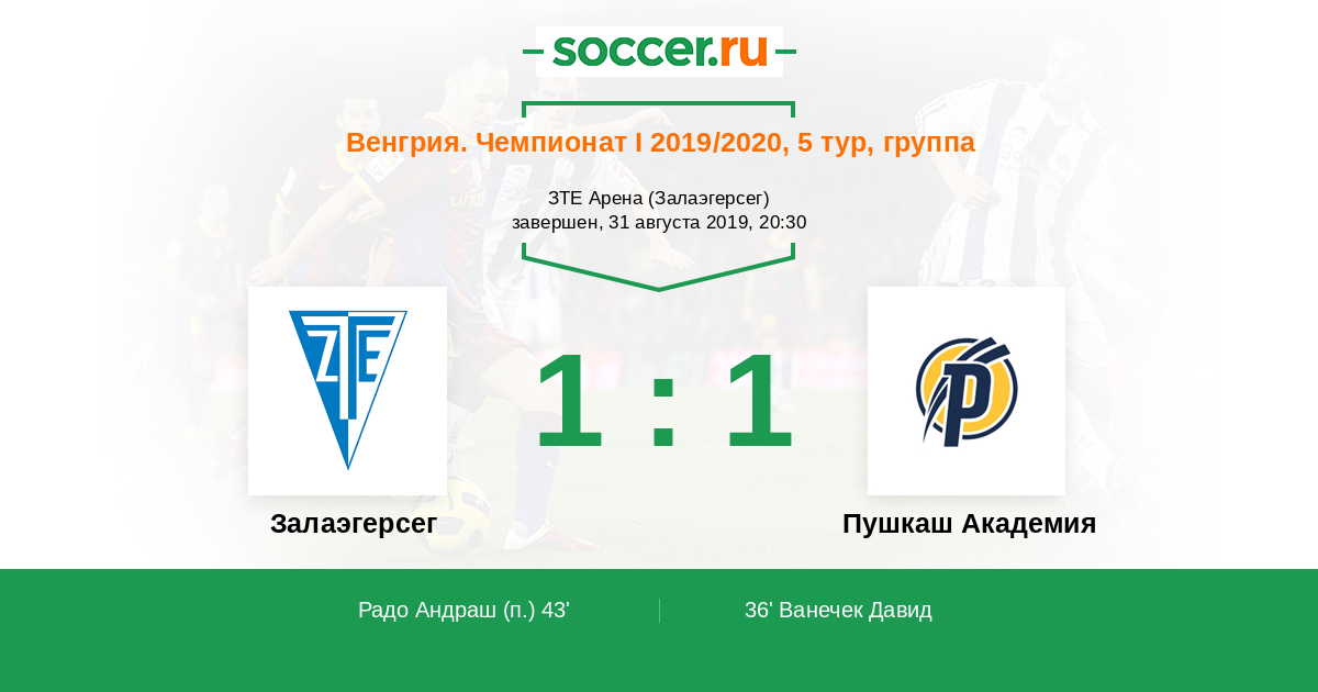 Протокол матча Залаэгерсег против Пушкаш Академия
