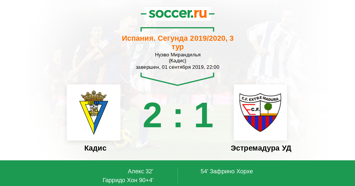Протокол матча Кадис против Эстремадура УД