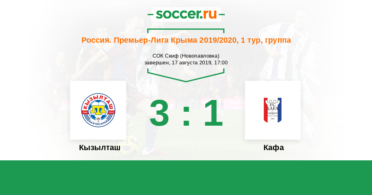 Россия. Премьер-Лига Крыма 03.09.2017 Кафа Логотип футбольный клуб Кафа (Феодосия) 0:3 Логотип футбольный клуб Кызылташ (Бахчисарай) Кызылташ