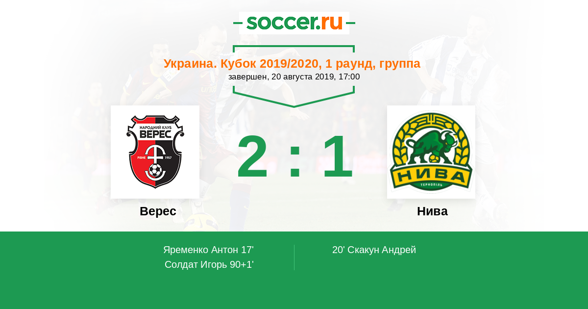 Протокол матча Верес против Нива