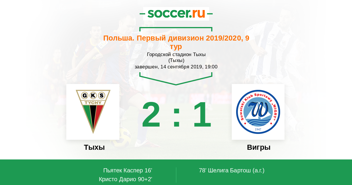 Протокол матча Тыхы против Вигры