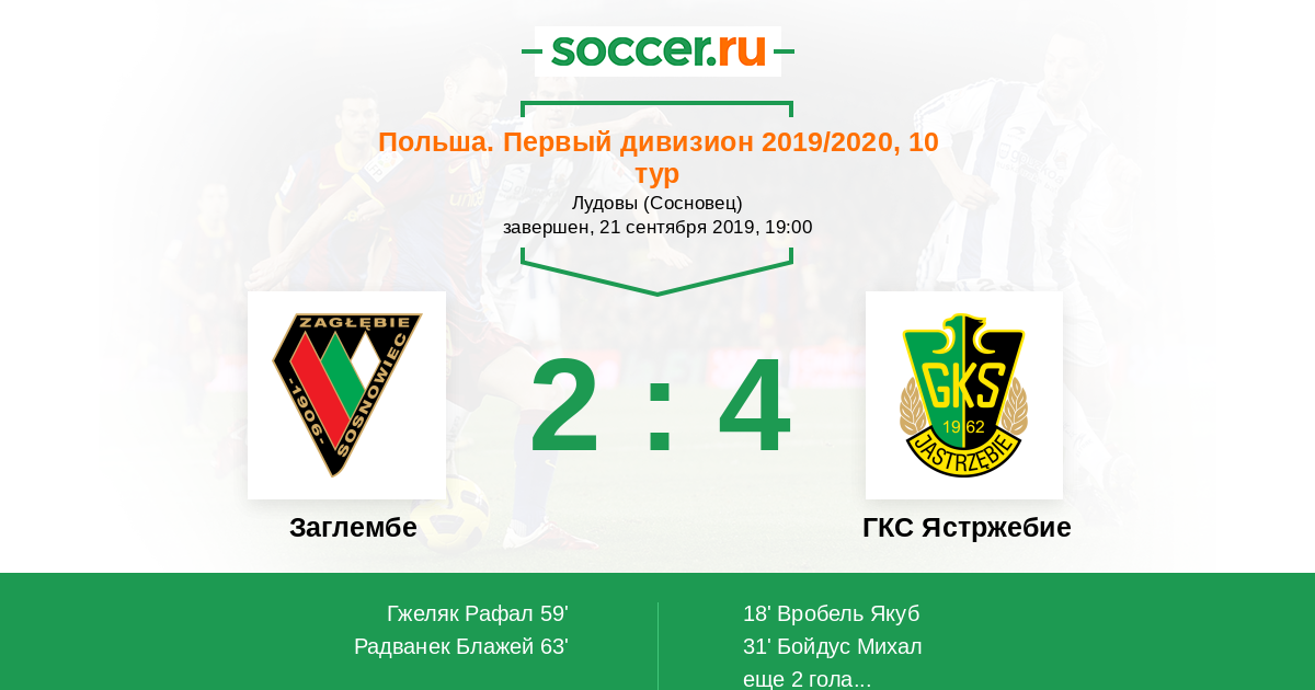 Протокол матча Заглембе против ГКС Ястржебие