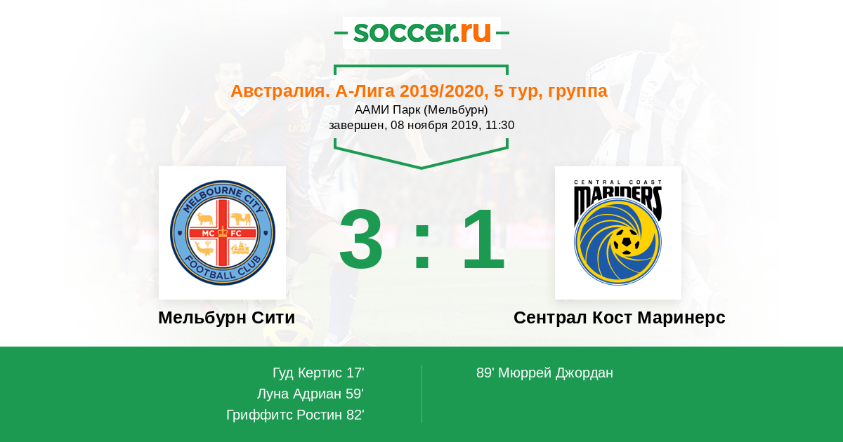 Протокол матча Мельбурн Сити против Сентрал Кост Маринерс