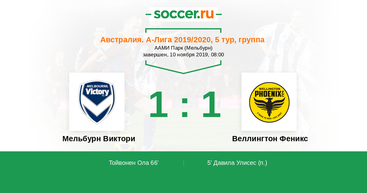Протокол матча Мельбурн Виктори против Веллингтон Феникс