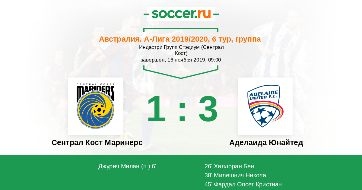 Протокол матча Сентрал Кост Маринерс против Аделаида Юнайтед
