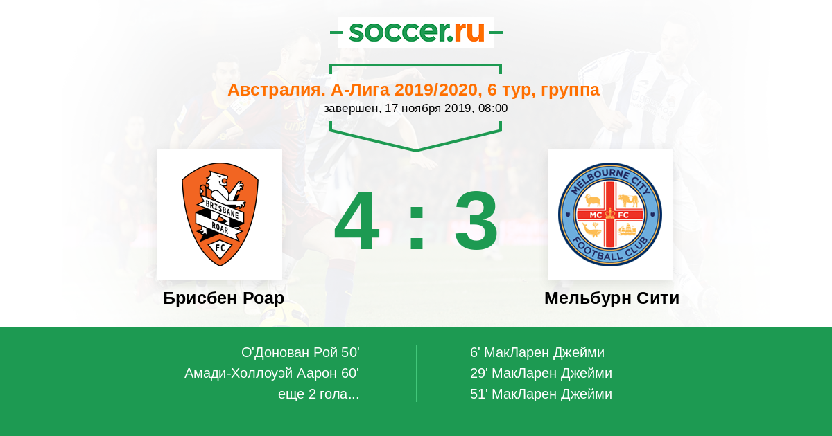 Протокол матча Брисбен Роар против Мельбурн Сити