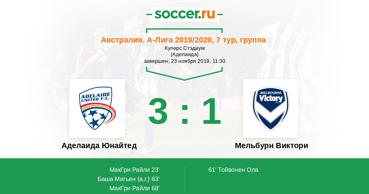 Протокол матча Аделаида Юнайтед против Мельбурн Виктори