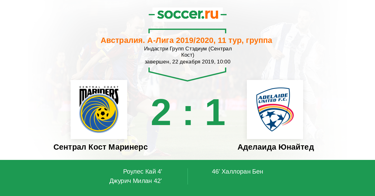 Протокол матча Сентрал Кост Маринерс против Аделаида Юнайтед