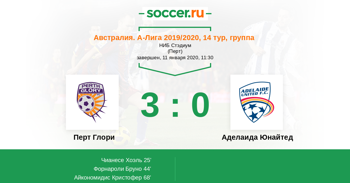 Протокол матча Перт Глори против Аделаида Юнайтед