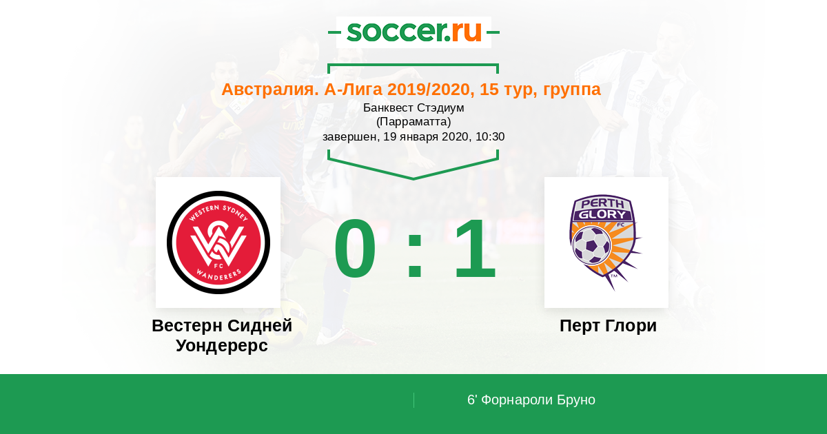 Протокол матча Вестерн Сидней Уондерерс против Перт Глори