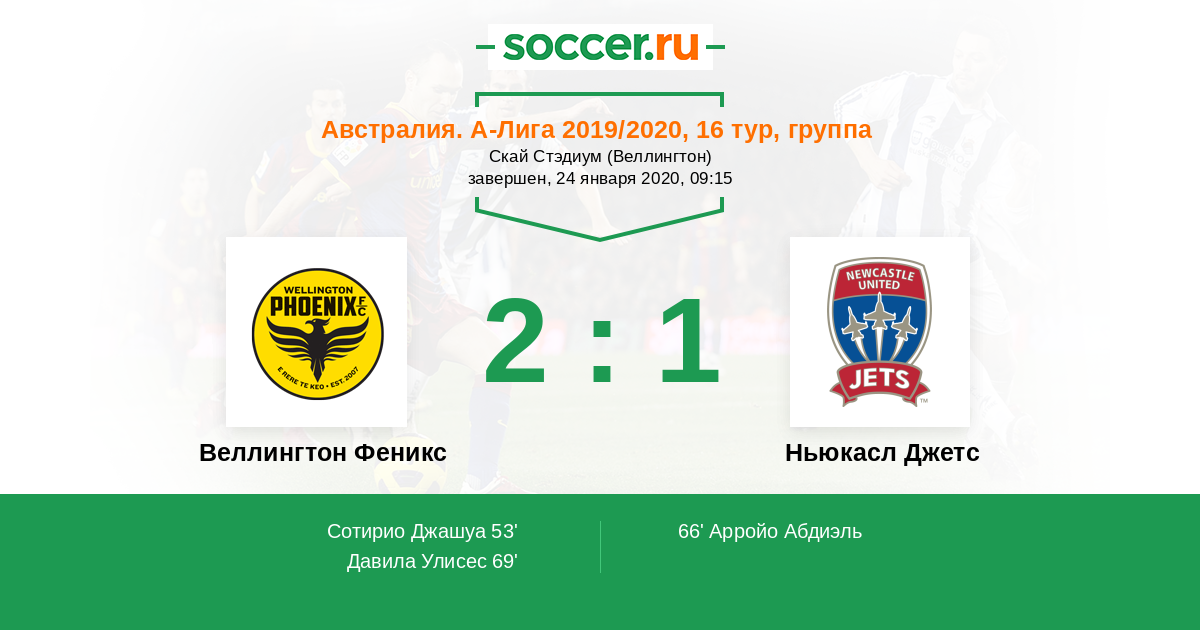 Протокол матча Веллингтон Феникс против Ньюкасл Джетс