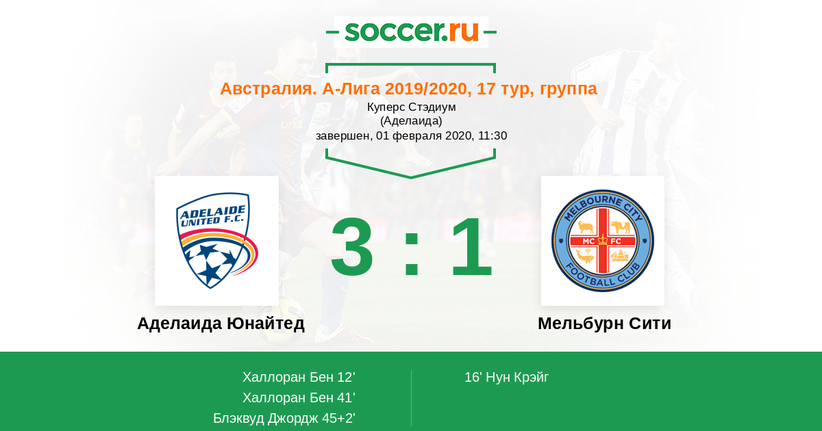 Протокол матча Аделаида Юнайтед против Мельбурн Сити