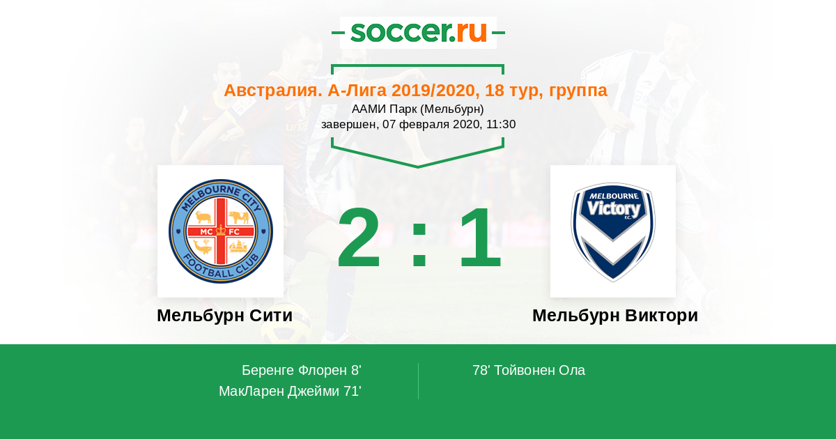 Протокол матча Мельбурн Сити против Мельбурн Виктори