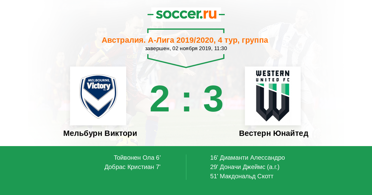 Протокол матча Мельбурн Виктори против Вестерн Юнайтед