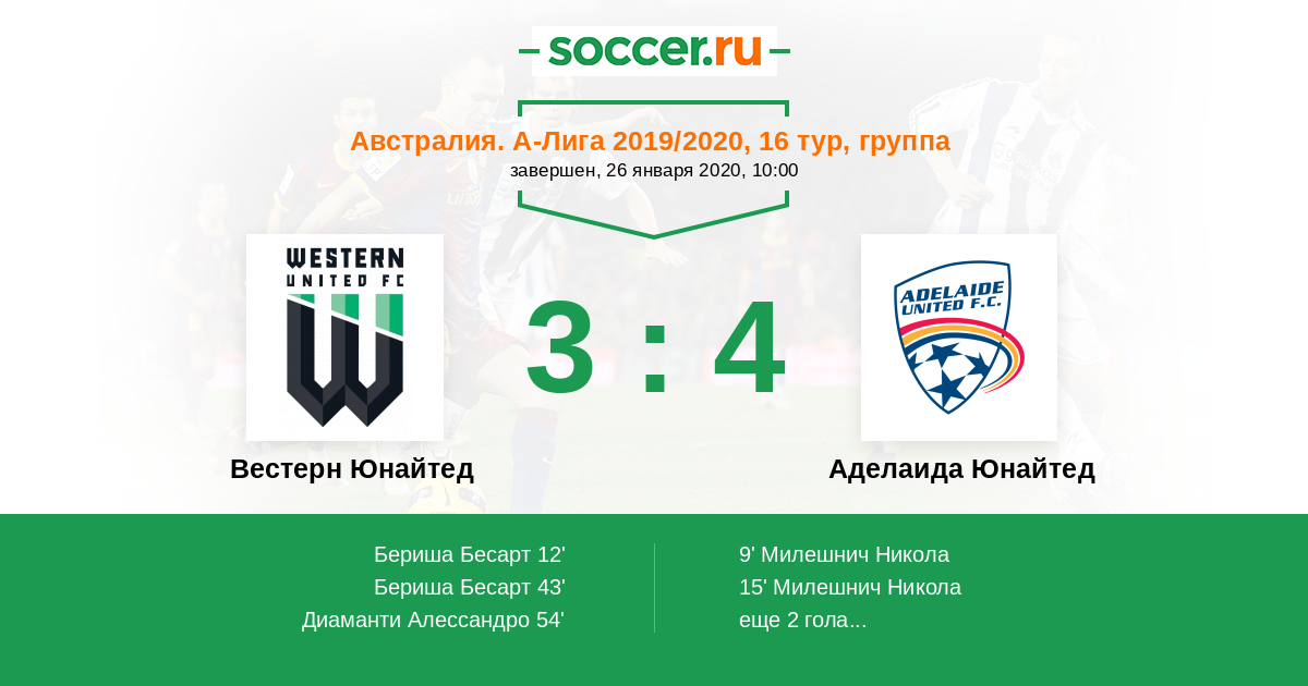 Протокол матча Вестерн Юнайтед против Аделаида Юнайтед